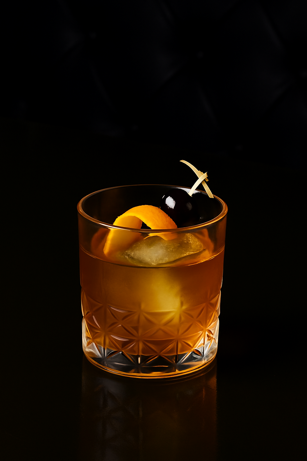 Jameson Black, Brown Sugar Syrup, Chocolate Bitters, Orange Bitters, Brown Sugar Rim, Maraschino Cherry & Orange Peel Garnish