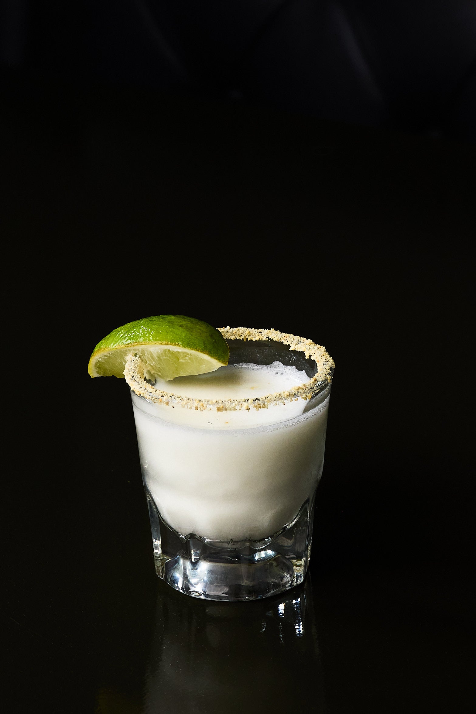 Tequila, Trip Sec, Agave Nectar, Salted Rim, & a Lime Garnish