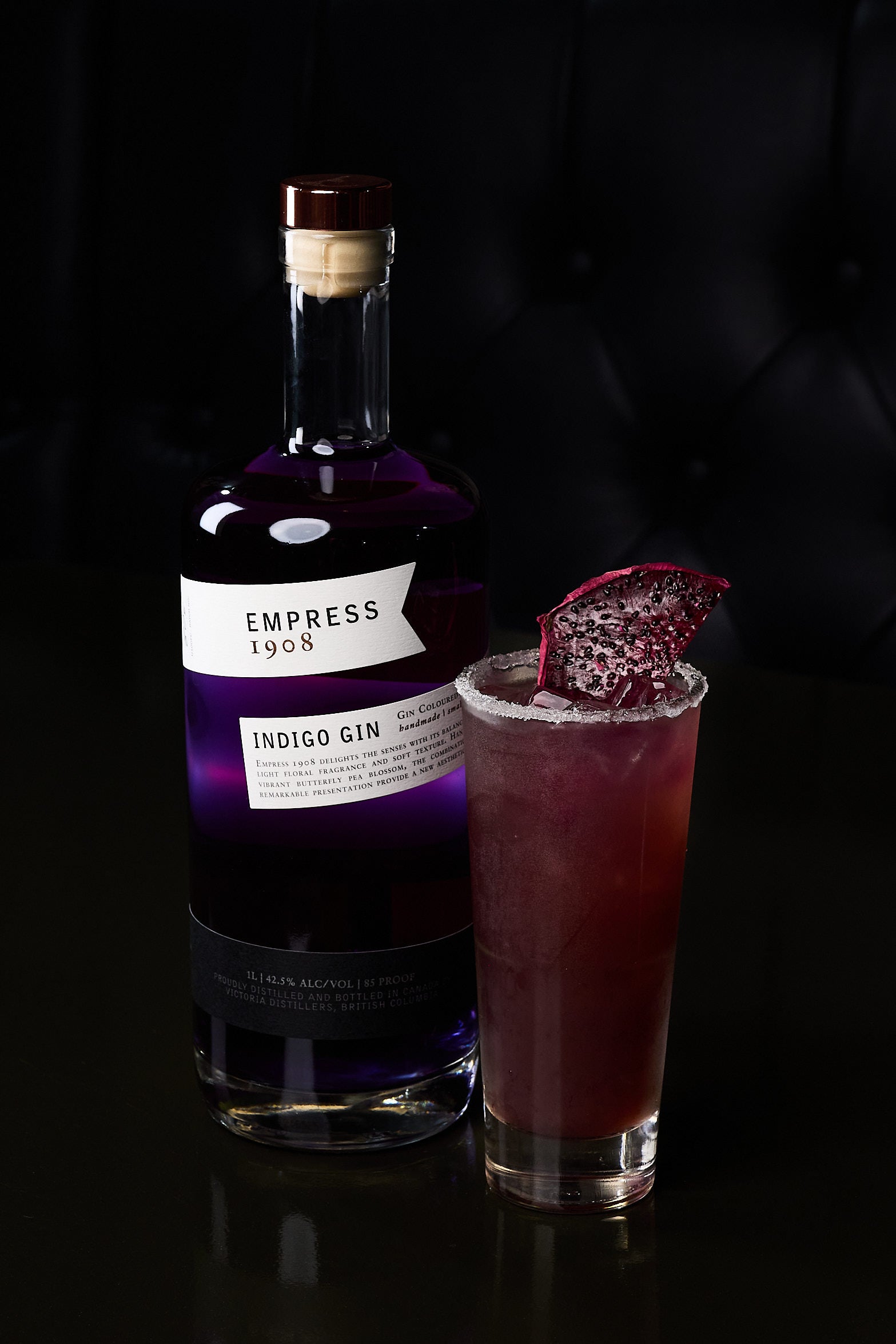 Gin, Razzmatazz, Lemon Juice, Simple Syrup, Ginger Beer, Flower