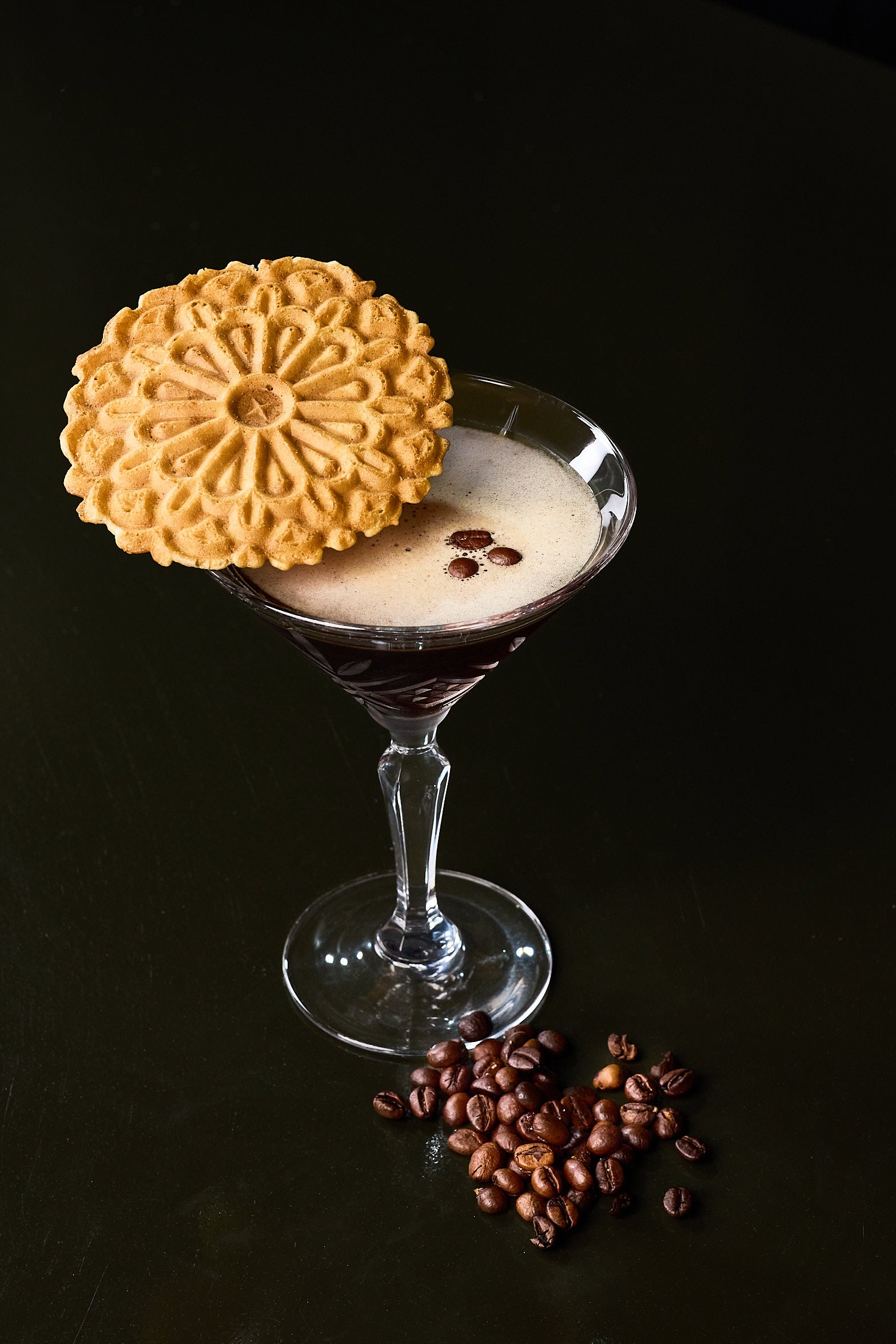 Vodka, Kahlua, Demi Syrup, Cold Brew, Cinnamon, with a Stroopwafel